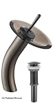 .../ KRAUS KGW-1700-PU-10ORB-BRCL Single Lever Vessel Glass Waterfall Faucet Oil Rubbed Bronze with Brown Clear Glass Disk and Matching Pop Up Drain / Glasses Clear